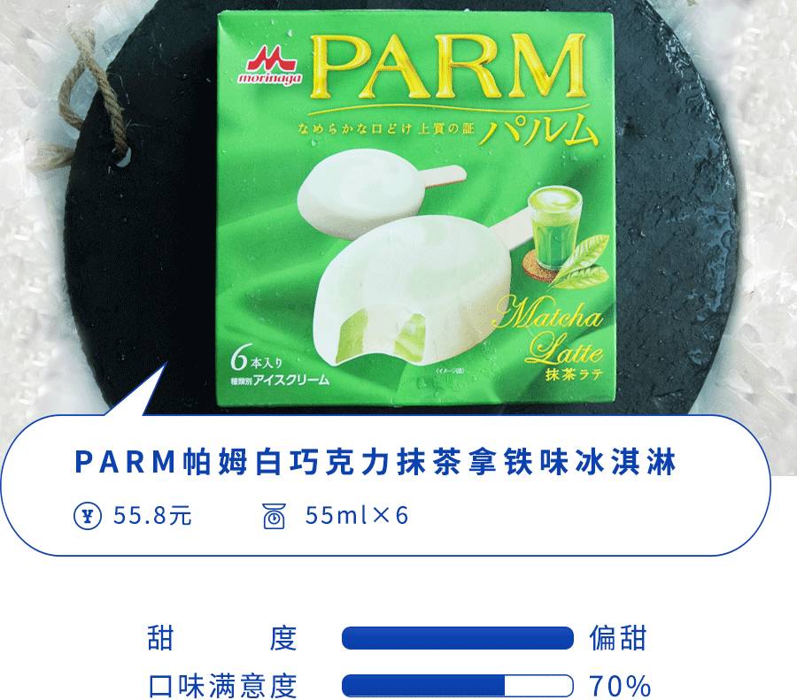 不是我说...pino的抹茶味、MOW的抹茶味、PARM的抹茶味,这仨简直就是H2O在自然界中的三种形态啊!pino是有巧克力外壳的,PARM是它的放大版,MOW是脱掉外衣的...没差啊,反正抹茶控每吃到一次就把眼睛瞪得老大,“哎哟,这抹茶味是要上天了”,在PARM之前她们明明已经上过两次天了好吗。