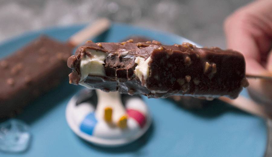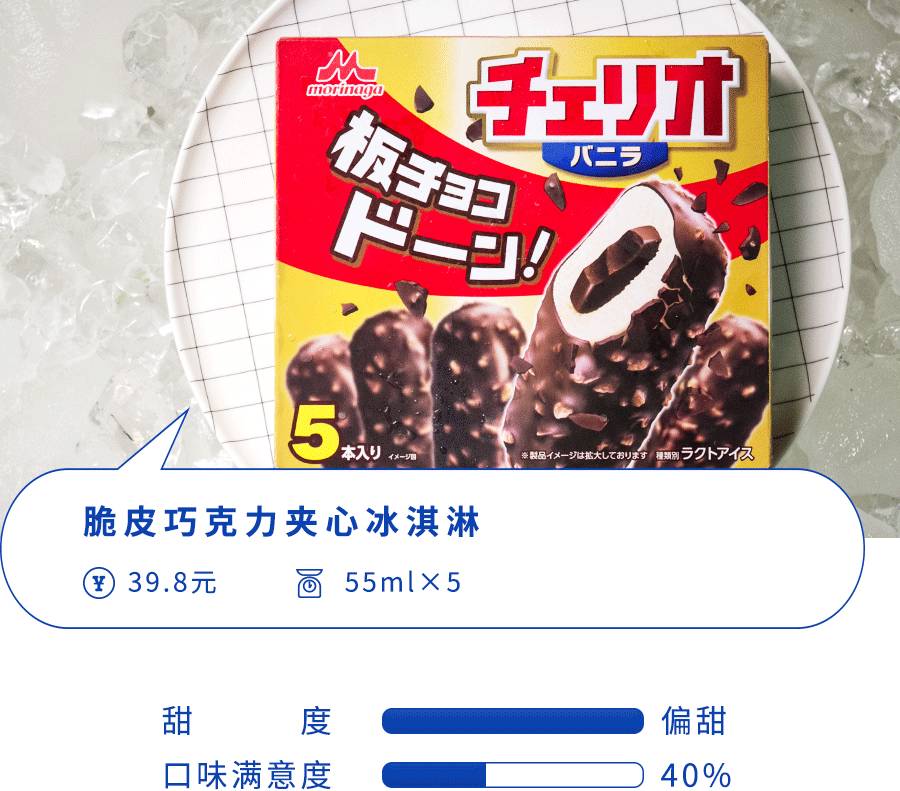 这个系列都是巧克力涂层包着冰淇淋的设定,有点像小时候吃的一款叫什么魔方的冰淇淋,但两者形状不同。据说,森永经过长达数年的研发,就为了保证巧克力和冰淇淋在接触到体温的瞬间同时融化,也就是传说中的入口即化。