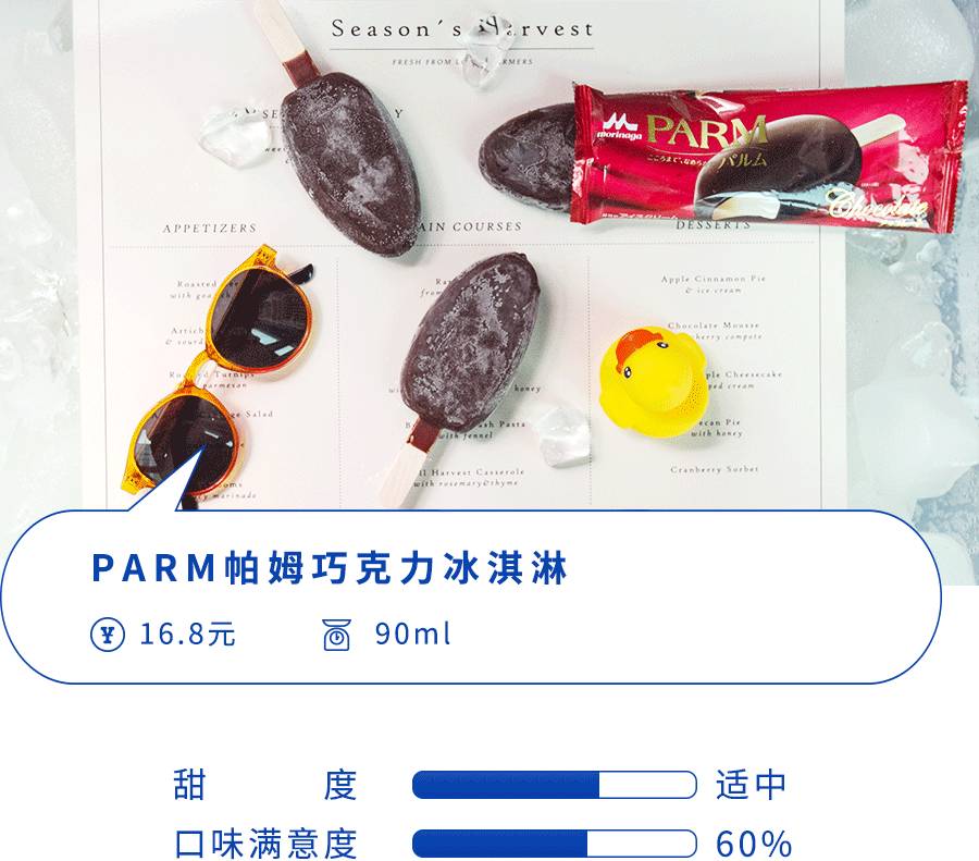 因为使用了意大利软奶酪等高质量的乳制品原料,因此PARM给人印象最深刻的就是它的醇厚香浓。局座吃过之后觉得比较奇怪,为啥PARM系列的“脆皮”巧克力一点不脆,后来查阅资料才发现,这大概是PARM引进中国时候的一个小bug,这系列的外壳涂层就是以咬下去不会碎,而是和冰淇淋一起融化为卖点的。当然,热量肯定也低不了,不过在好吃的冰淇淋面前,就别在意什么卡路里了好吗。