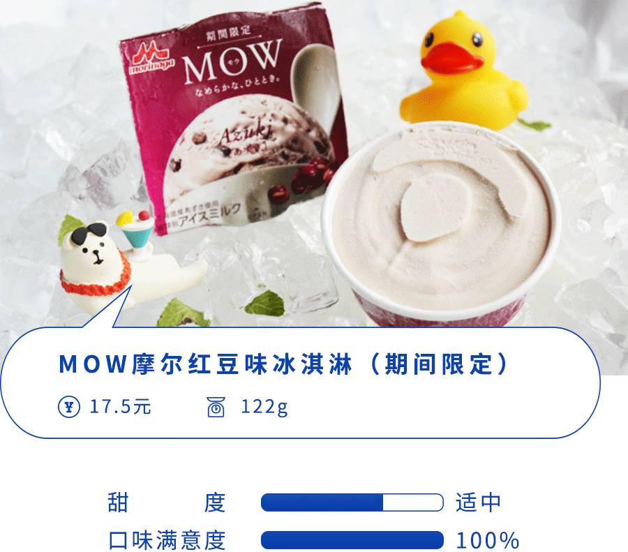 日本人最爱搞的“期间限定”,当然也不会放过冰淇淋了……这款冰淇淋本身是淡淡的红豆牛奶味,吃到里面的红豆的时候,口腔瞬间被浓郁的红豆味填满了,而且真的是每一口每一勺都有实实在在的红豆,丰富了冰淇淋的口感。与其说是红豆,更像是蜜红豆,吃起来全身心都被一种甜蜜感充满,这就是小姐姐们常说的恋爱的味道吧~不过,在局座这个中年直男看来,红豆味在整个MOW系列是比较甜的,一整个吃下去会有被甜味冲昏头脑的感觉。