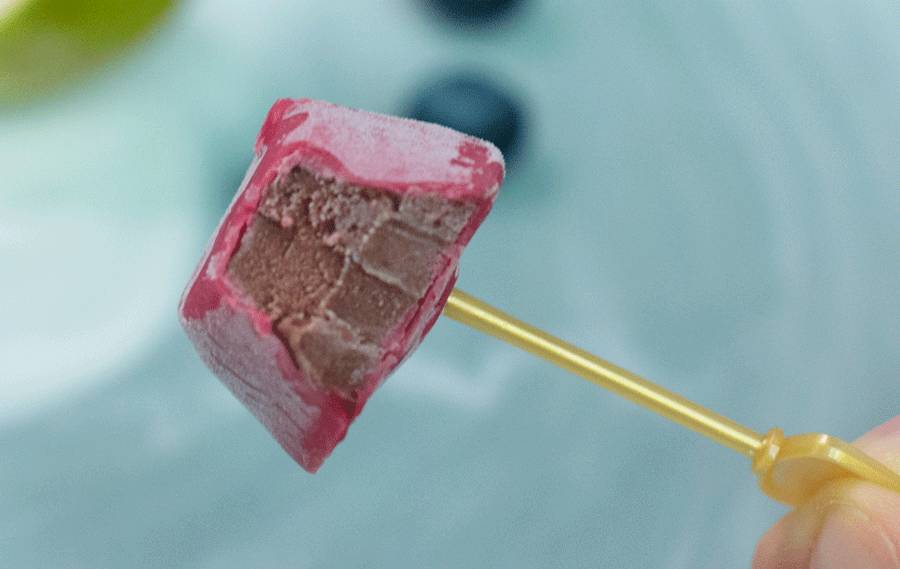 公平一点来港,这是一种hin高级的味道,带点酸度的莓果巧克力外壳,包裹着、中和着内里冰淇淋的甜,细腻顺滑的冰淇淋中还夹杂着莓果果肉,就像冷饮界的马卡龙般拥有法式甜点特有的层次感。