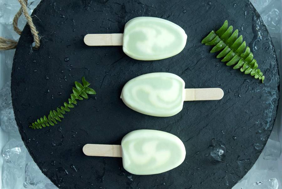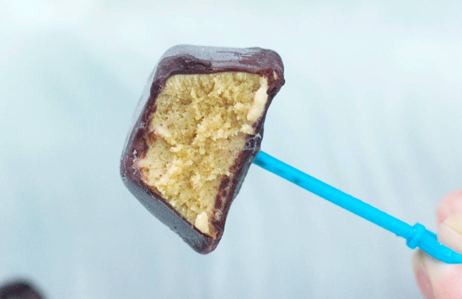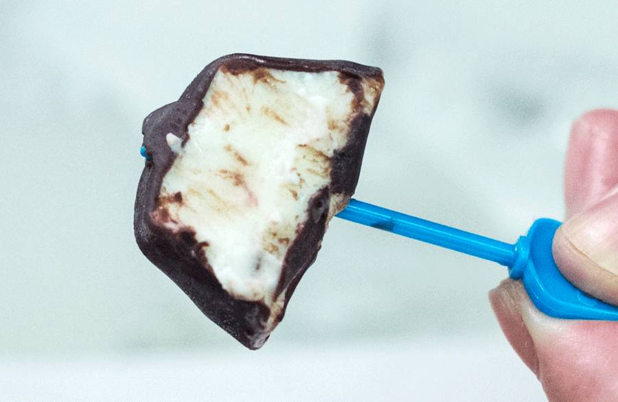 咬开你可以看到冰淇淋在白巧外壳里的美丽的拉花。