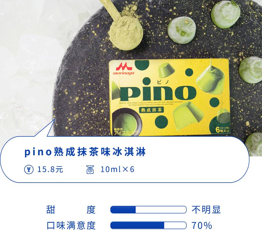 比pino那款抹茶要苦一些,茶味更浓郁,但我觉得pino那个更好吃~