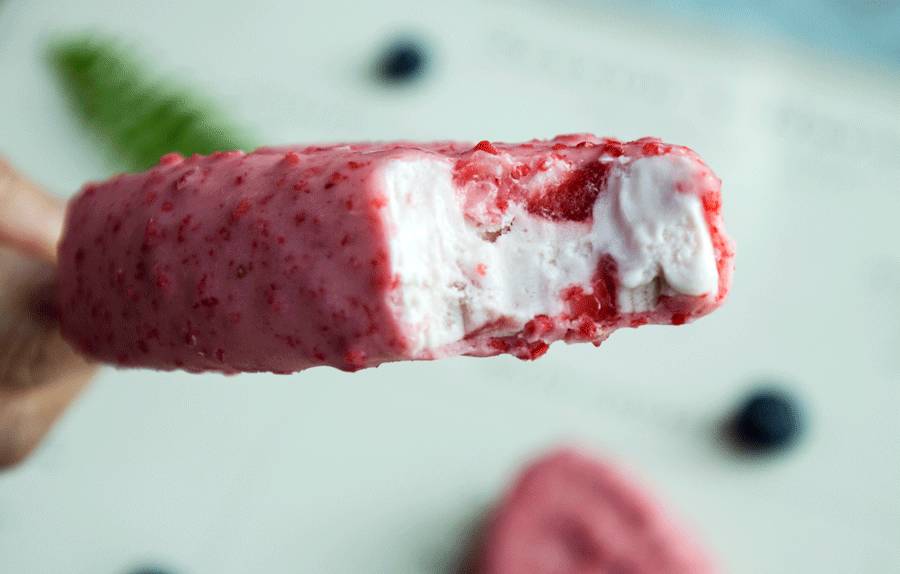PARM系列里最少女的一款脆皮冰淇淋,外壳是对女生来说有魔力的粉色,上面布满像草莓籽似的红色颗粒,里头夹着有果肉的草莓酱。