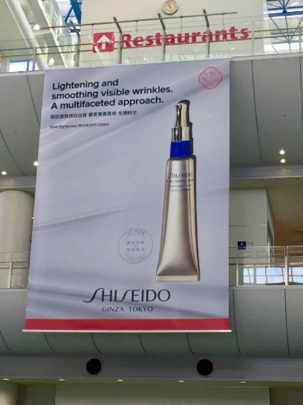 这个被爱称为资生堂“小针管”的悦薇珀翡塑颜抗皱霜可以说是势头很足,不仅地铁站都是这个“小针管”的灯箱,就连日本多个机场也能见到它的巨幅海报。▼
