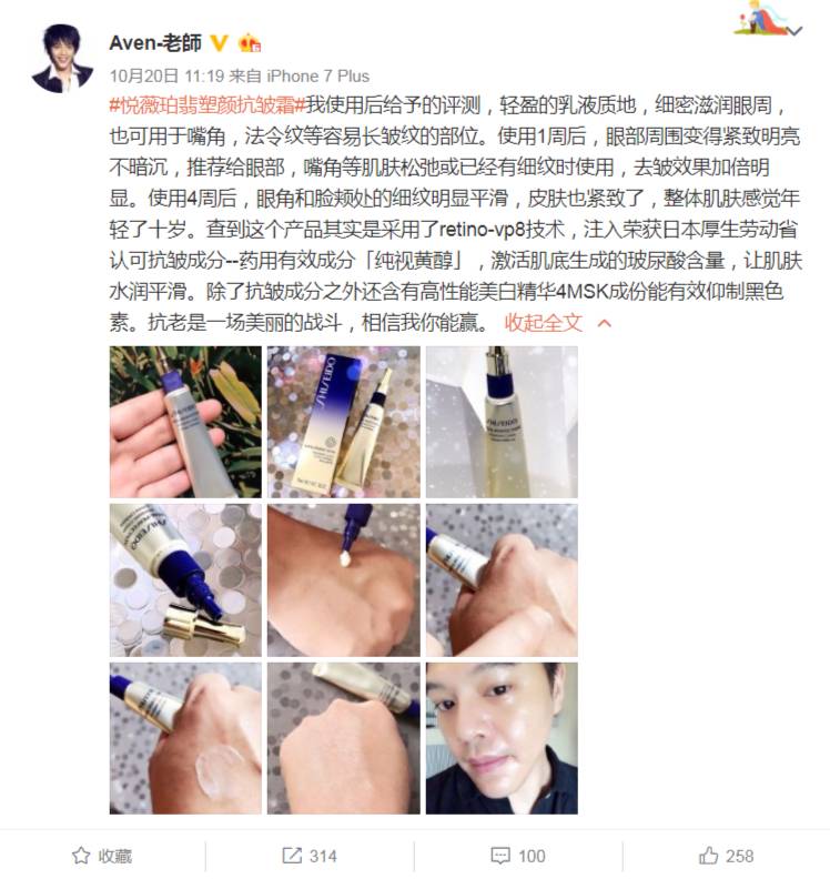而且不仅仅是在日本热销,搜了一下这个产品的测评,看到台湾的美妆博主陈佩佩和Aven老师也分享过同款产品的测评心得。说是使用4周后,不仅仅是眼部细纹明显改善,法令纹的部位也变得很平滑。看到皮肤提亮,有弹性很多的评价,就基本没办法把持住钱包君了!▼