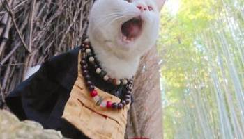 #日本猫住持#京都猫猫寺的小雪住持,穿着袈裟真的太萌太萌啦。(ins:nekojizo)