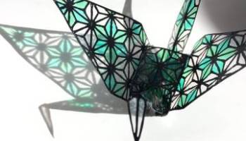 日本网友花窗玻璃弄的千纸鹤,超级美了。