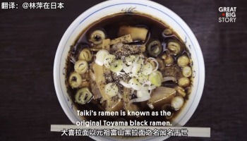日本富山的黑色拉面了解一下。这种拉面在1947年前横空出世,用五种不同的酱油和秘密配方调制的汤底,看起来很咸,实际上口感很温和。在日本国内举办的拉面大汇合“东京拉面展”的活动中,连续5年荣获第1名,是富山代表性的拉面,想吃只能去富山了~