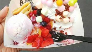 外带pancake专门店「BEAR’S SUGAR SHACK」终于开张了!!!基本上是许多个小pancake和冰淇淋的组合,一共8种口味,也可以自己选择配料,好看又好吃!!!店面设计很森林系,还有敲可爱的小熊,又多了一家要去的店啊
