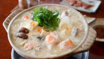 #日本城市画报# 石狩锅,是北海道具有代表性的地方风味,该料理因盛产鲑鱼的石狩川而得名。在带广地区,同样的料理又叫做“十胜锅”。做法是将鲑鱼切成段,与贝类、虾、蔬菜、豆腐、魔芋、玉米等一起,用海带汤汁和大酱进行调味后炖煮。