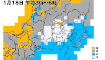 明天(18日),关东甲信地区预计将有大雪,东京市中心可能会下雪,需要注意路面冻结影响交通。