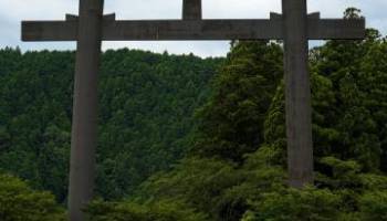 #日本第一大鸟居#和歌山世界遗产熊野古道中,你能看到一个巨大无比的鸟居,它是「熊野本宮大社」的鸟居「大齋原」,高 33.9米,宽42米,被称为灵魂的终点,生命的起点,是日本最大的鸟居。人在大鸟居之下,显得十分渺小。⛩️ (twi:Hisa0808)