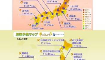 2019年日本秋季红叶和银杏的前线预测的合集来了 !这是今年第一次预测,所以不会100%准确,但是一般也差不太多,可以给大家的出行作一个参考。 按图片顺序顺序: ⭐全日本 ⭐北海道地区 ⭐东北地区(青森、岩手、秋田、宫城、山形、福岛) ⭐关东地区(东京及周边) ⭐中部地区(石川、福井、岐阜、滋贺、静冈等) ⭐近畿地区(京都、大阪、奈良等) ⭐中国地区(鸟取、岛根、广岛等) ⭐四国地区 ⭐九州地区